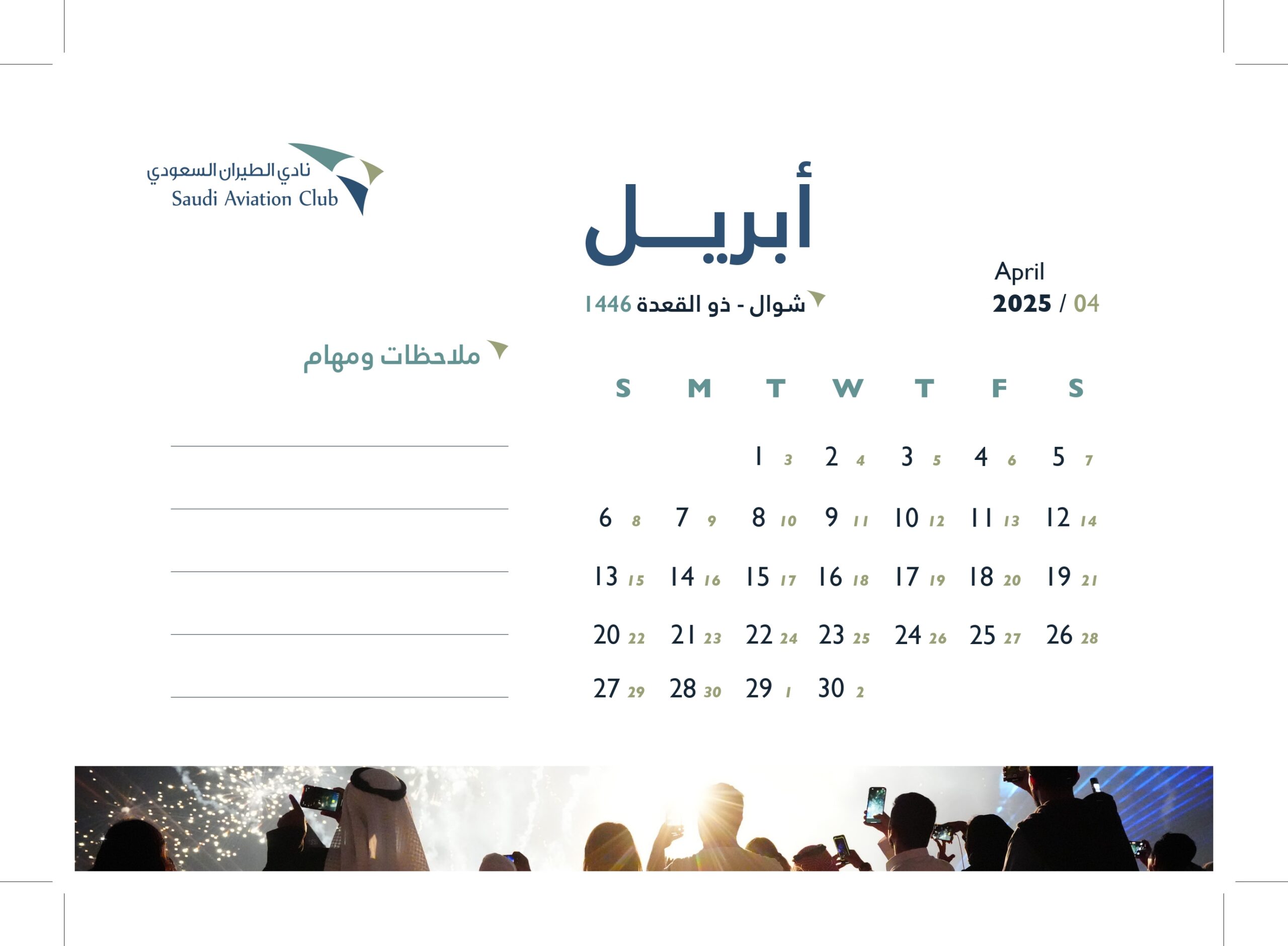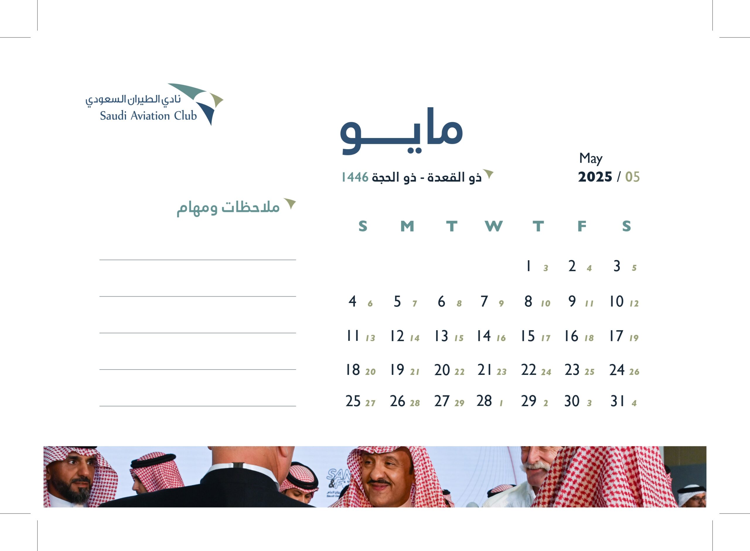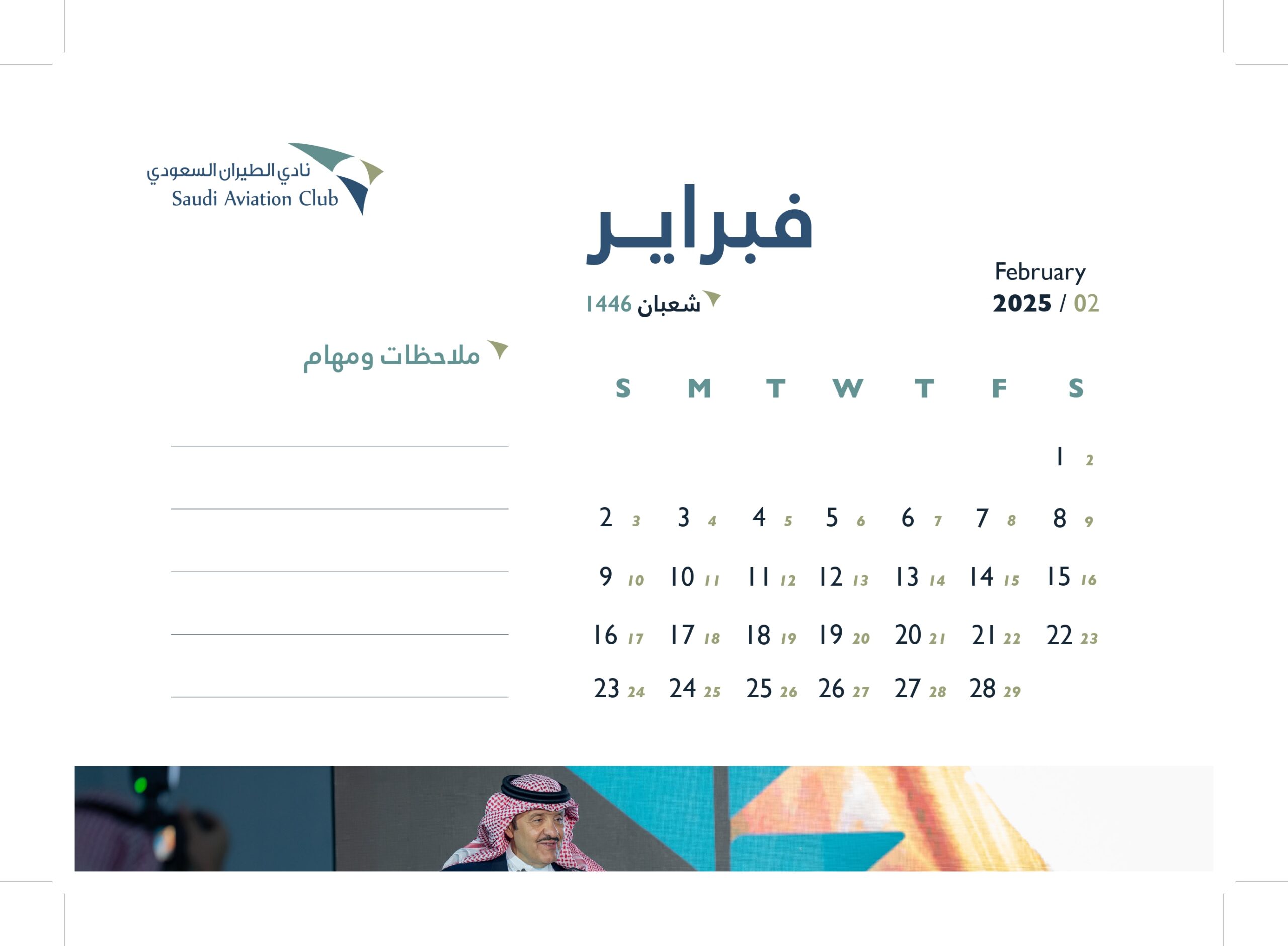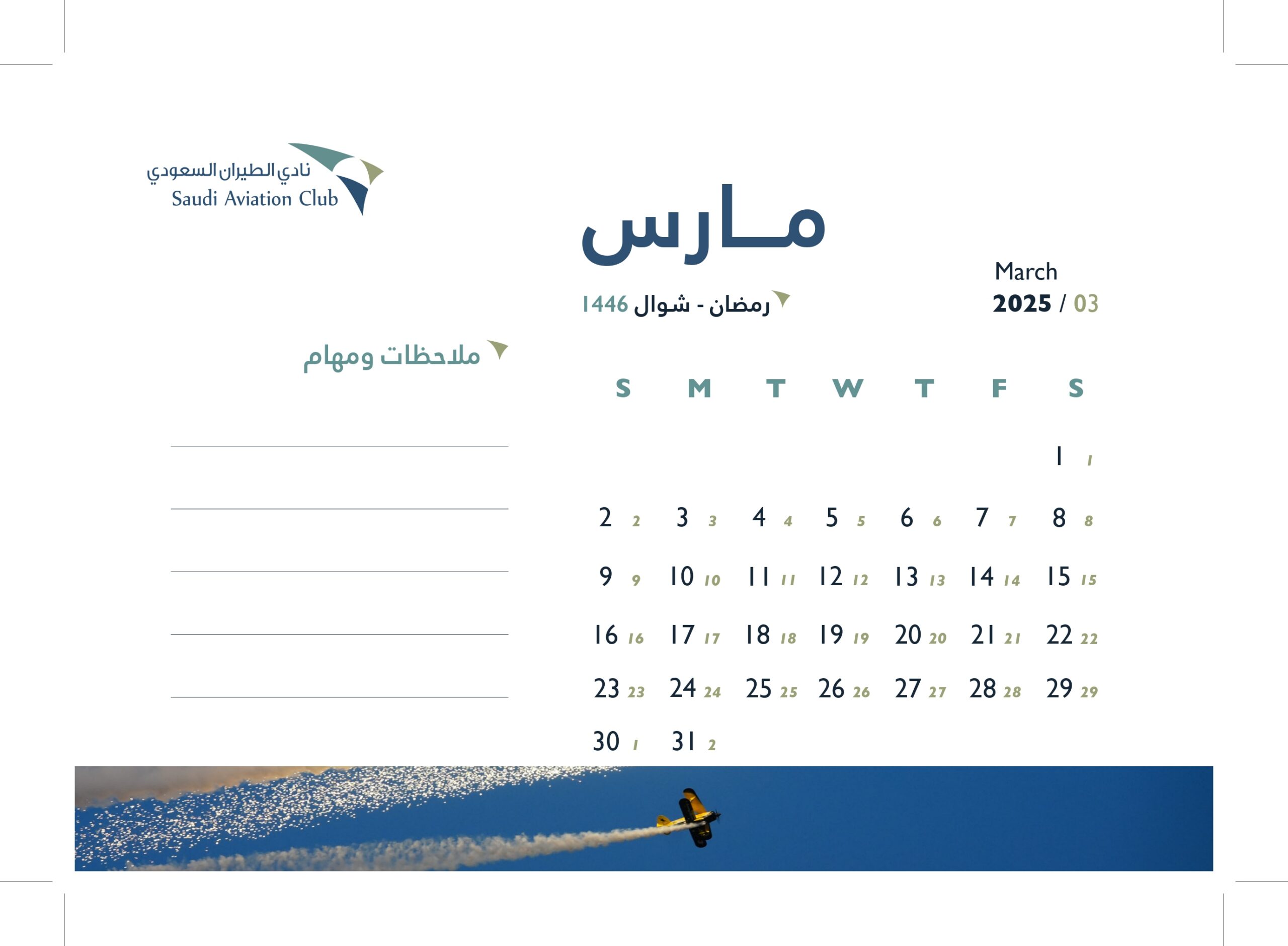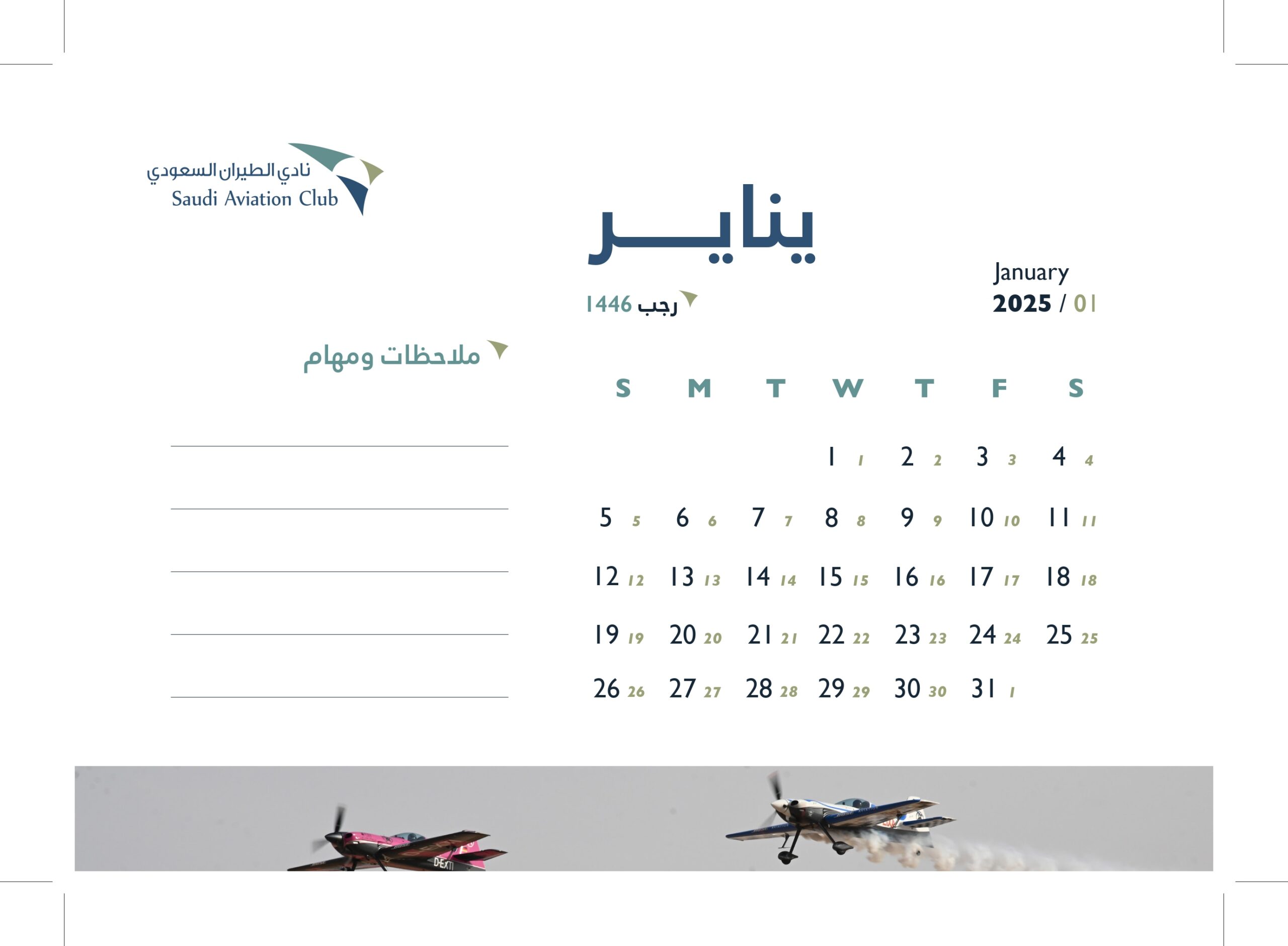 تصميم التقويم السنوي لعام 2025 بنادي الطيران السعودي