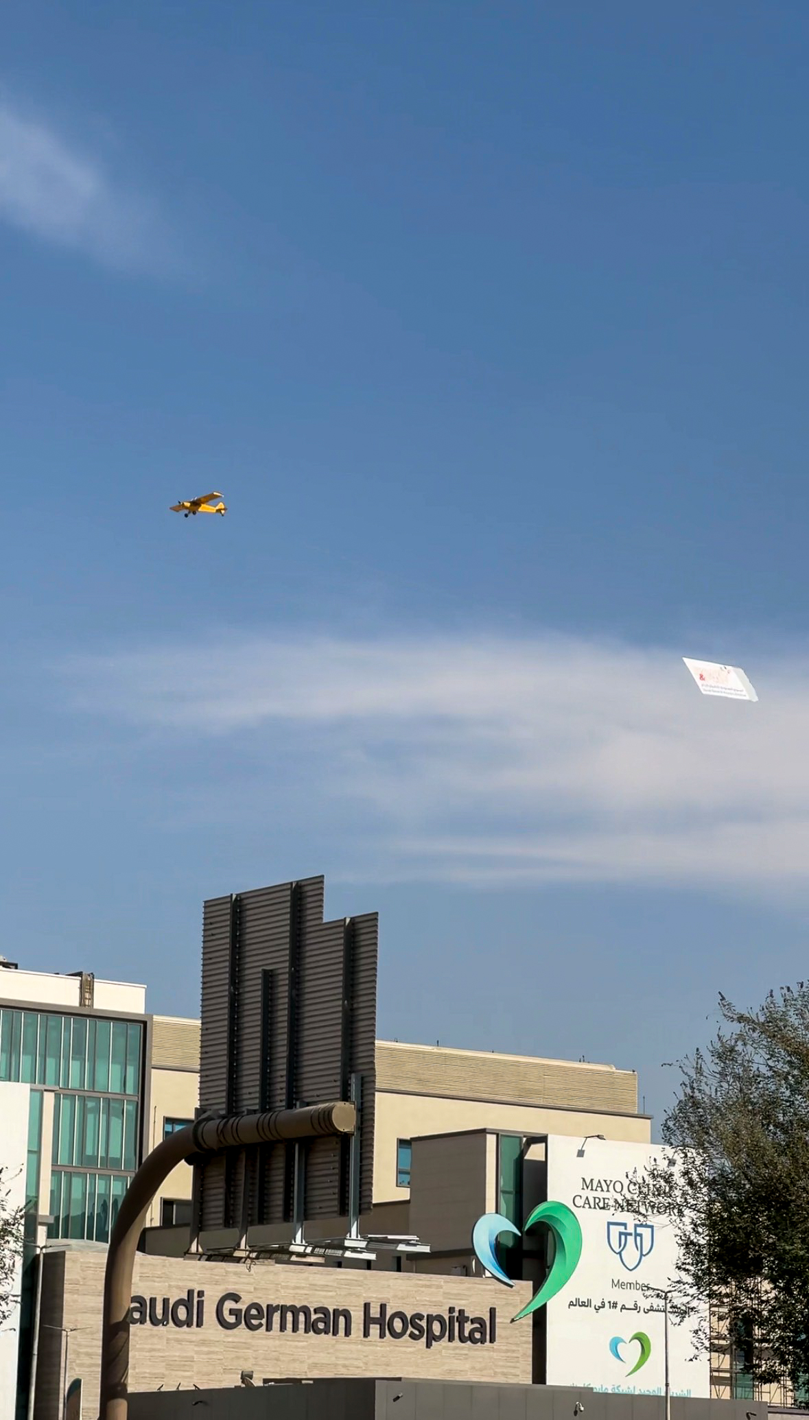 اختيار مواقع التصوير الاستراتيجية: قمنا بتحديد واختيار المواقع الأمامية المناسبة في شمال طريق الملك فهد بالرياض، لضمان التقاط فيديوهات واضحة ومميزة للطائرة أثناء سحب العلم.